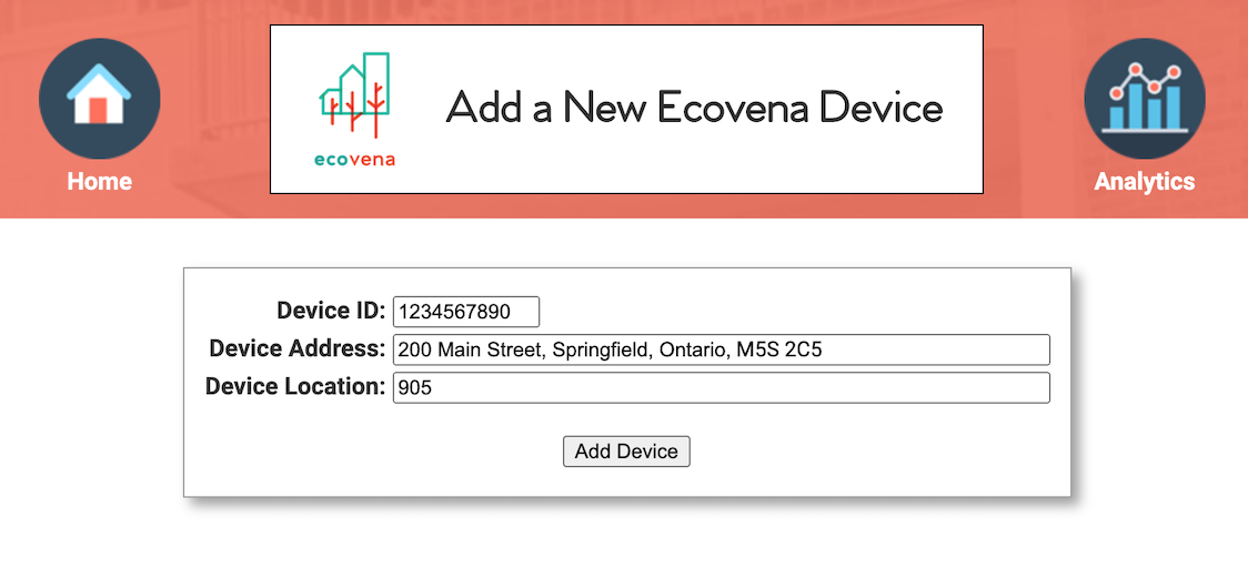 Adding the Device to the User Interface takes seconds. Enter the data from the device label and data will immediately start appearing in your Ecovena dashboard.